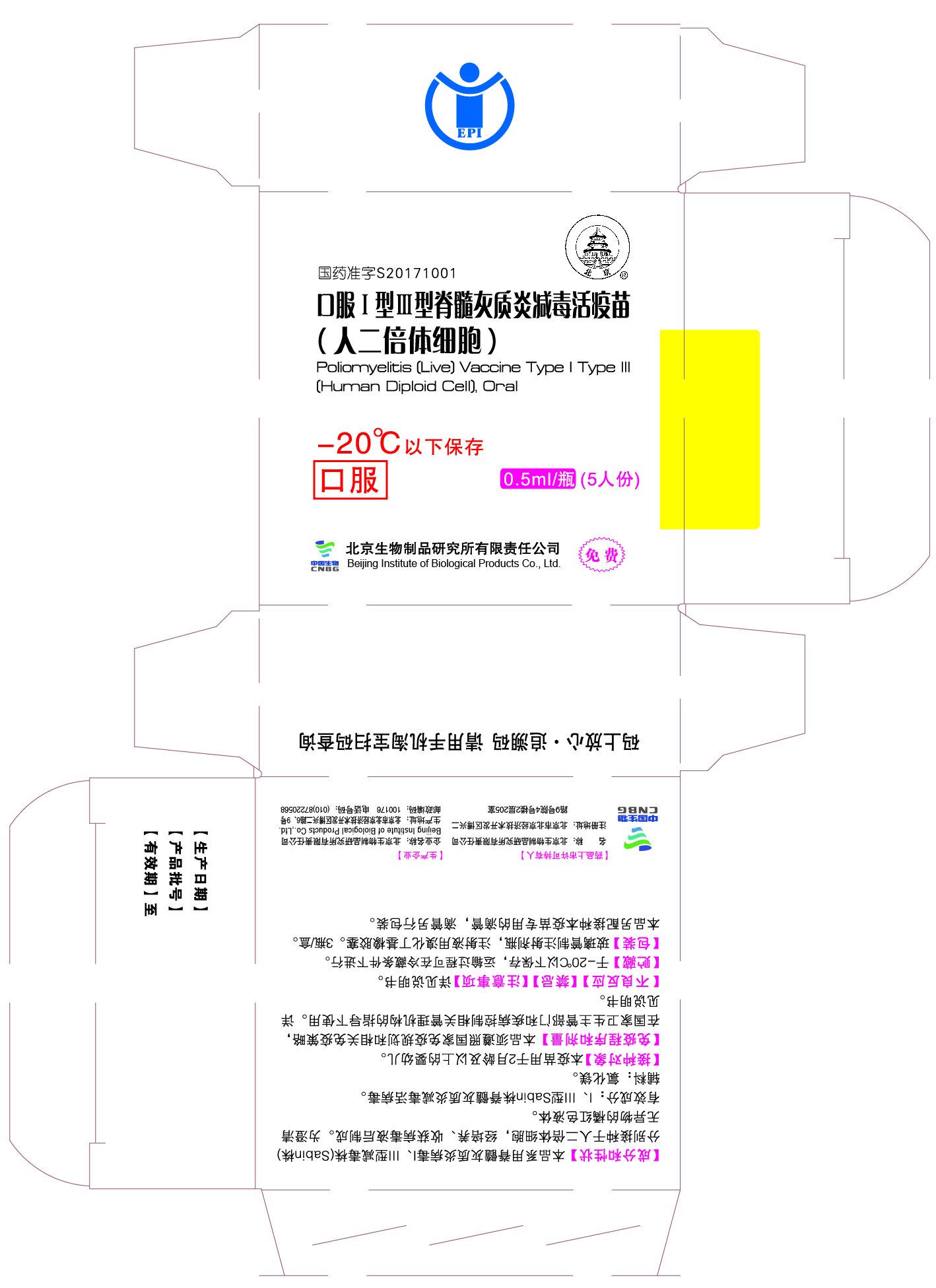 2016年北京生物制品研究所有限責任公司的口服Ⅰ型Ⅲ型脊髓灰質炎減毒活疫苗(人二倍體細胞)國內首家上市。產品用脊髓灰質炎病毒Ⅰ、Ⅲ型減毒株分別接種人二倍體細胞2BS株,經培養、收獲病毒液,制成二價液體疫苗,用于預防脊髓灰質炎。
