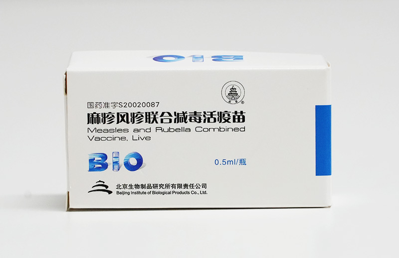 麻疹風疹聯合減毒活疫苗系用麻疹病毒滬-191減毒株接種原代雞胚細胞和風疹病毒BRDⅡ減毒株接種人二 倍體細胞,經培養、收獲病毒液后,按比例混合配制,加入適宜穩定劑凍干制成。
